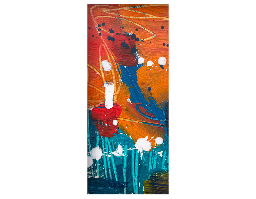 Großes entsteht im Kleinen – bei genauerem Hinschauen ergeben sich spannende Formen und Farbspiele, der Pinsel tanzt über Leinwand und Papier und hinterlässt wunderschöne Spuren…. abstrakte kalligrafische Elemente unterstreichen den erzählenden Charakter dieser Bilderserie.